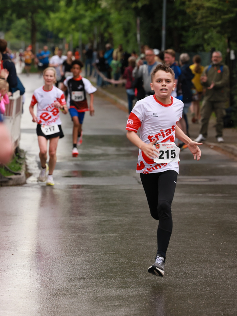 Die „Breitscheider Nacht“ am 3. Mai begann entgegen ihres Namens nicht spätabends, sondern bereits um 15:00 Uhr, als die Sonne noch klar am Himmel stand. Der Begriff „Nacht“ bezieht sich vielmehr auf das umfangreiche Rahmenprogramm, das Läufer, Zuschauer und Nachbarschaft bis in die Abendstunden gemeinsam feiern ließ. Insgesamt gingen beeindruckende 691 Athletinnen und Athleten auf verschiedenen Distanzen an den Start: von Bambiniläufen (400 und 800 Meter), Schülerläufen (1,5 und 2,5 Kilometer) sowie Volksläufen (5 und 10 Kilometer) bis hin zum 5-Kilometer-Walking. Bereits zum 31. Mal sorgte der TuS Breitscheid an der Sportanlage der Matthias-Claudius-Grundschule am Mintarder Weg für eine perfekte Organisation. Besonderes Highlight war der traditionell schnelle 10-Kilometer-Lauf: Es siegte Jakop Nowicki-Koth (Düsseldorfer Athletics, 32:38,48 min) und blieb damit gute 2:30 Minuten hinter dem beeindruckenden Streckenrekord von 30:07 Minuten. Bei den Frauen gewann Katharina Wehr (ASV Duisburg, 37:15,74 min).