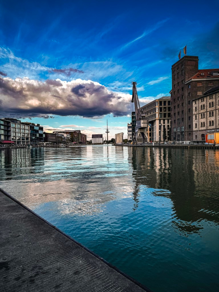 Münsters Stadthafen – früher Umschlagplatz für Güter, heute Umschlagplatz für Kreative. Alte Speicherhäuser die Kulisse, statt Kähne nun Schwimmer.